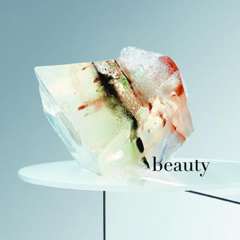 Crystal Face Stone Cleanser made with rose quartz, gold mica and carbon.